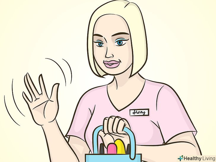 Запишіться на прийом до майстра манікюру. якщо ваші нігті пошкоджені, рекомендуємо вам звернутися до професіонала, щоб він зробив вам манікюр або завдав покриття на нігті. Розкажіть майстру про свою проблему і запитайте, що він може порадити для лікування. Якщо вам також запропонують масаж рук, погоджуйтеся, так як він підвищить кровообіг і стимулює відновлення. [19]- Ще краще робити масаж рук і нігтів з кокосовим або будь-яким іншим маслом, так як воно зволожує нігтьову пластину.