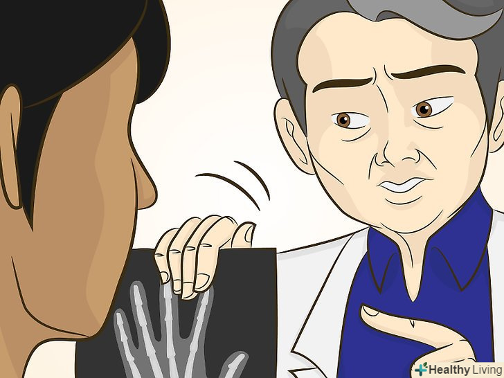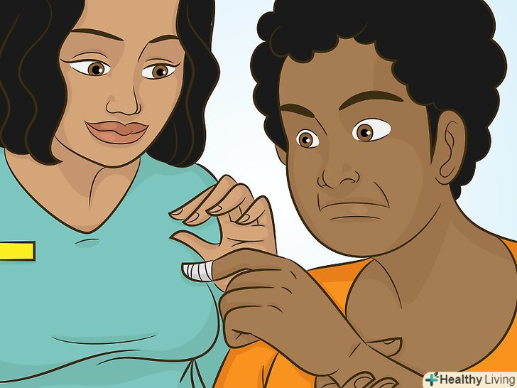 Отримайте екстрену допомогу. якщо ви сильно розрізали пластину нігтя і кров не зупиняється або якщо більша частина нігтя відокремлена від шкіри, постарайтеся якомога швидше отримати медичну допомогу. Лікар-травматолог проведе лікування безпосереднього пошкодження і вживе заходів, щоб запобігти розвитку вторинної інфекції. [5]- Іноді пошкодження нігтя є ознакою перелому кісток фаланги пальця. Якщо на пальці немає візуальних пошкоджень, для встановлення діагнозу може знадобитися рентген або МРТ.