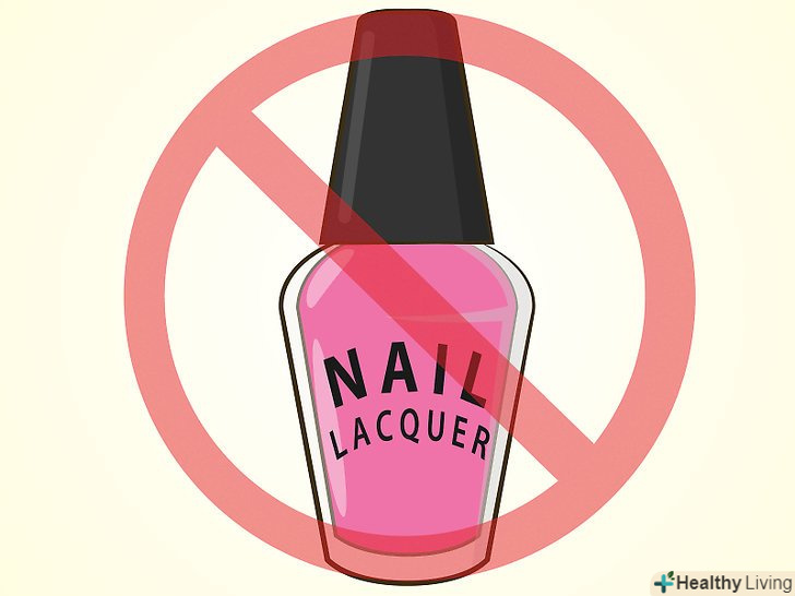 Не фарбуйте нігті кілька тижнів. іноді через постійне нанесення лаку нігті "задихаються", що веде до скупчення бактерій, грибків і відкладень. Зніміть лак і почекайте 2-3 тижні, перш ніж наносити його знову. Зверніть увагу, чи покращиться стан нігтів. Коли ви знову захочете нафарбувати нігті, виберіть лак, що містить вітамін А та інші поживні речовини. [6]- Невеликі білі цятки на нігтях вказують на скупчення кератину, що можна вилікувати, зробивши перерву від манікюру. [7]
