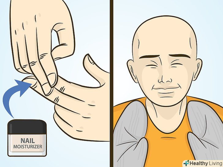 Постійно зволожуйте нігті. пошукайте спеціально призначений для нігтів крем, сироватку або гель. Наносите його протягом дня, особливо після того як помили руки. Увечері втирайте солідну порцію зволожуючого засобу, а потім надягайте бавовняні рукавички або шкарпетки. Бавовна збереже нігті зволоженими вночі, а також не дозволить повітрю їх висушити. [10]- Миття рук може сушити нігті. Щоб захистити шкіру і нігті, Зберігайте крем для рук поруч з кожною раковиною будинку, а також в столі на роботі. Наносите зволожуючий засіб кожен раз, коли вимиєте руки.