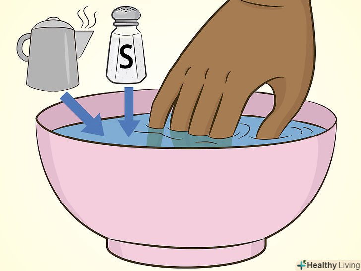 Робіть ванночки для нігтів. налийте в миску середнього розміру теплої води і додайте 4 чайні ложки морської солі. Занурте руки в розчин і залиште відмокати до 10 хвилин. Також можна занурити руки в миску з теплим молоком або оливковою олією. Після цього нанесіть зволожуючий засіб прямо на нігті, щоб ще більше стимулювати їх відновлення. [11]