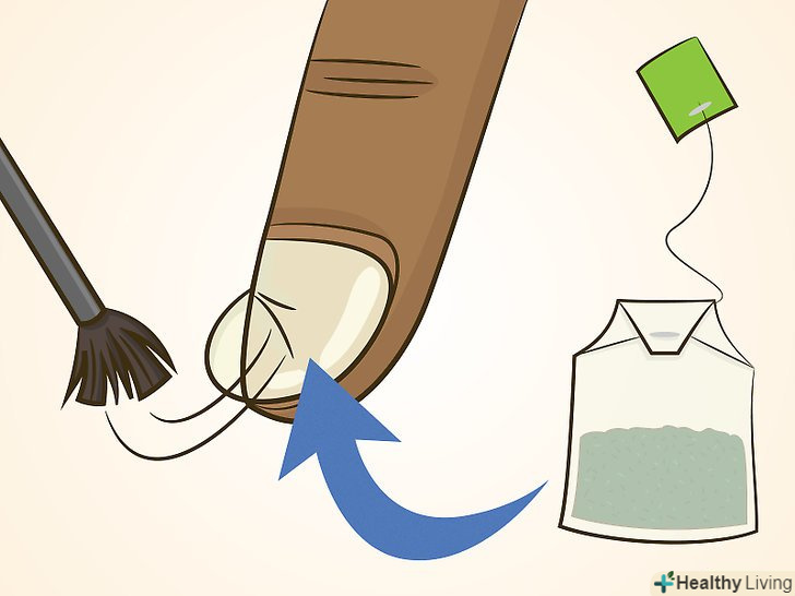 Зробіть накладку з чайного пакетика. Візьміть паперовий чайний пакетик і відріжте невеликий шматочок. Нанесіть на пошкоджений ніготь прозорий лак-основу. Помістіть крихітну накладку поверх порізу або на пошкоджену область на нігті. Притисніть, щоб прибрати всі бульбашки, а потім покрийте ще один шаром прозорого лаку-основи. Це відмінне і швидке рішення при розщепленні нігтя, проте обов'язково стежте за будь-якими ознаками інфекції. [12]- Тримайте «латку» з чайного пакетика на нігті не більше тижня. При необхідності замініть її на нову.