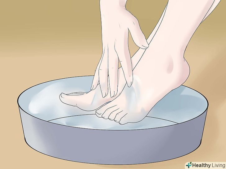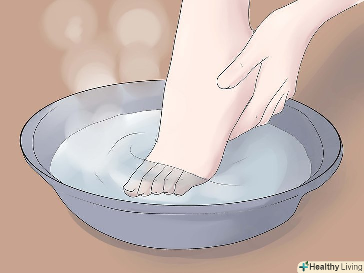 Підготуйте ванну для ніг. Візьміть таз, щоб обидві ноги помістилися в ньому відразу або використовуйте ванночку. Налийте теплу воду в тазик, додавши заспокійливі аромати (можна запашну піну для миття) і стерилізатори (може бути алкоголь)