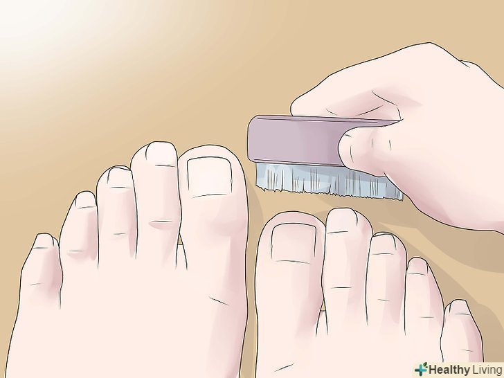 Пензлем для педикюру почистіть нігті зверху для більш глибокого чищення