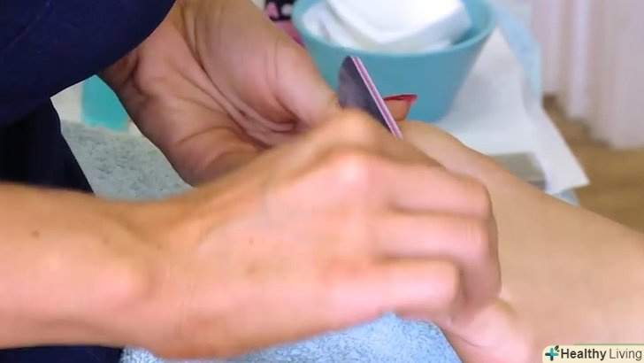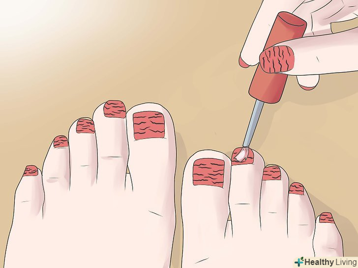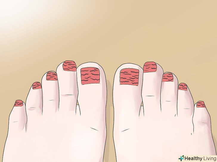 В кінці нанесіть лосьйон для ніг або лосьйон для педикюру.- І, нарешті, нафарбуйте нігті. використовуйте базовий шар перед нанесенням кольорового лаку, щоб лак протримався довше