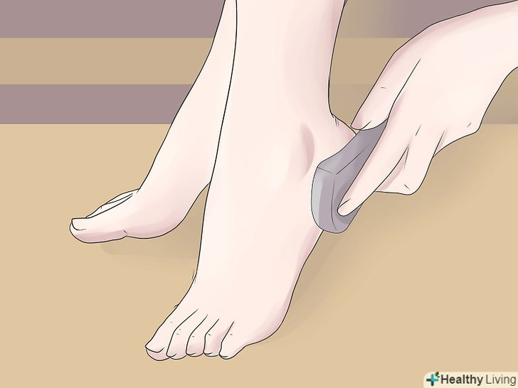 - Теркою для ніг вичистіть підошви, особливо п'яти і подушечки пальців (розташовані під великим пальцем)