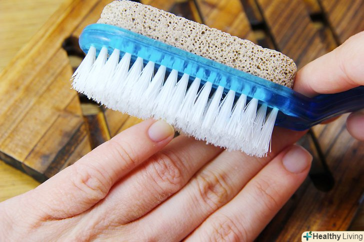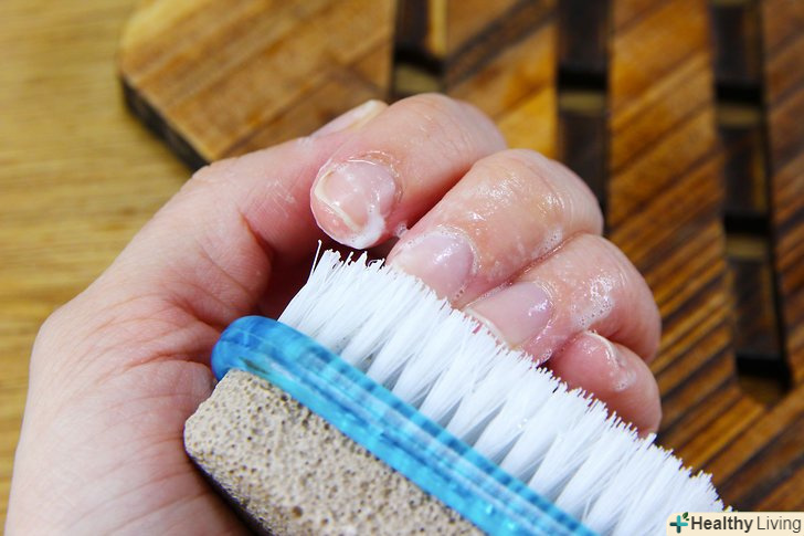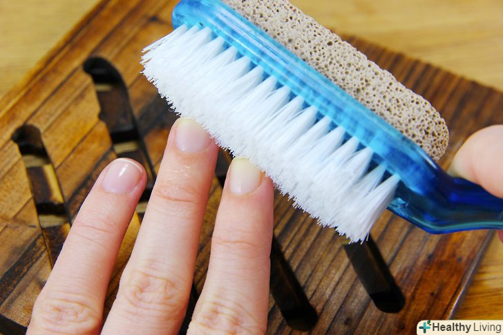 Візьміть щіточку для нігтів. щітки для нігтів мають тонку і прямокутну форму і м'які щетинки. Вони схожі на зубну щітку, але більші за розміром і не мають довгої ручки. Знайти їх можна у відділі краси більшості універмагів. [5]