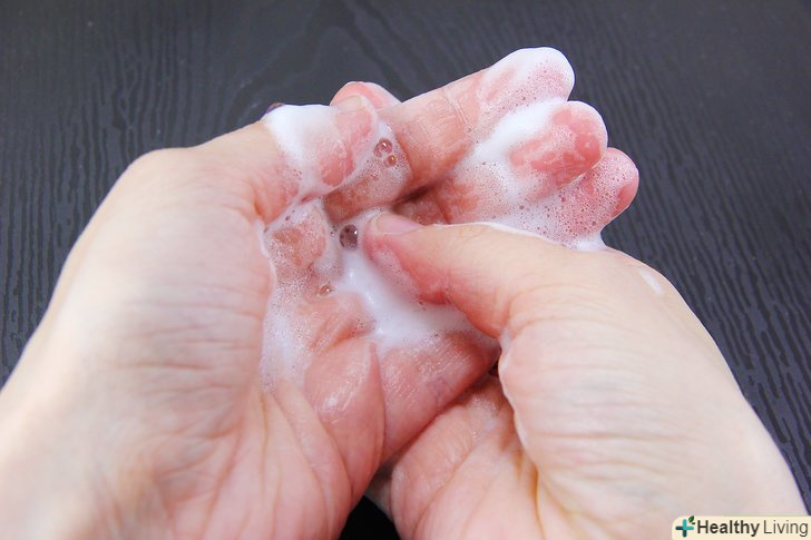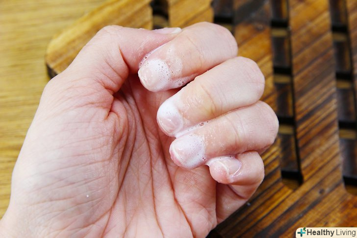 - Зігніть пальці до долоні і подушечками пальців втирайте мило під нігті.