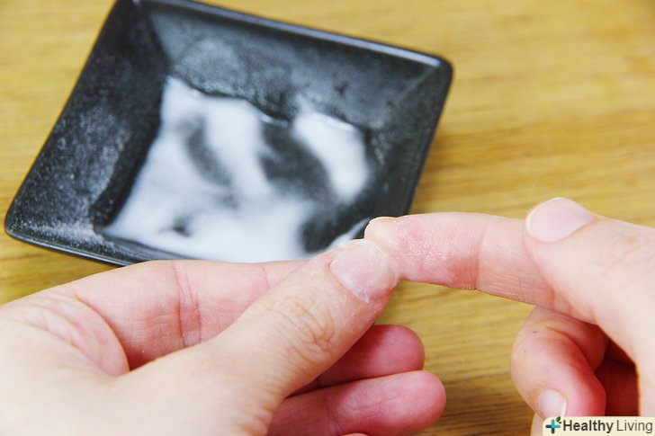 Нанесіть пасту з харчової соди під нігті. залиште її на п'ять хвилин, а потім змийте теплою водою. [18]