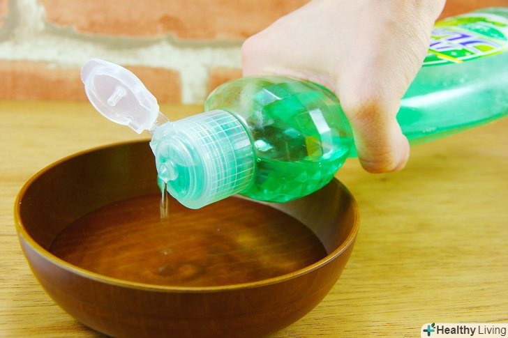 Розведіть мило в теплій воді. додайте мило в миску з теплою водою і добре перемішайте. Для цього підійде будь-яке мило, але рідке мило краще розчиняється у воді. [8]