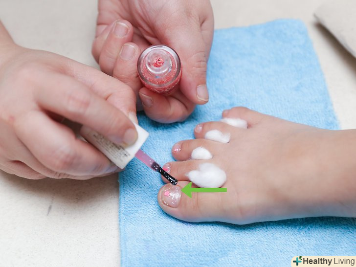 Виберіть колір. він у величезній мірі впливає на те, як ви будете себе відчувати і сприймати свої нігті. Червоний колір добре буде виглядати на наступний день, після того як ви вилізете з душу і подивіться на свої нігтики. У той момент, коли ви наносите лак, такий педикюр може здаватися більш дорослим. Також його важче знімати, і він може вийти неакуратно, якщо у вас не набита рука. Якщо ви не хочете здаватися занадто дорослою або мучитися з тим, щоб рівно нанести лак, рожеві і коралові відтінки завжди вам підійдуть. Або ви можете пофарбувати нігті в кольори веселки. Але дивіться, щоб вони не вийшли несмачними.
