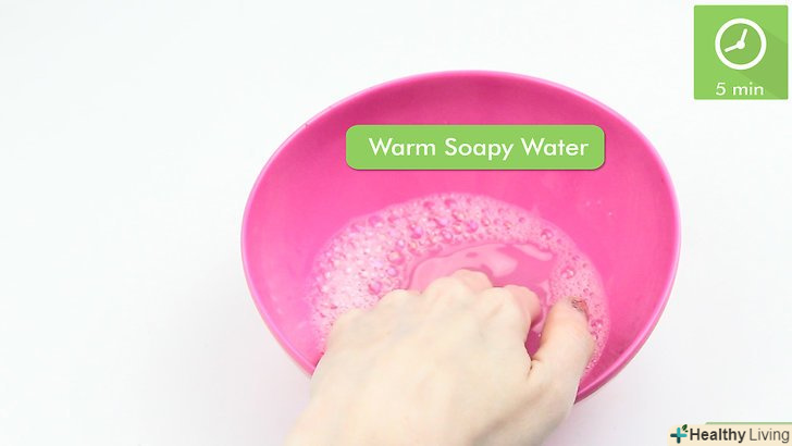 - Можливо, вам потрібно буде замочити руки в гарячій воді на 20-25 хвилин. Тим часом можна подивитися телевізор і зняти лак вже після того, як улюблена передача закінчиться. Слідкуйте за тим, щоб вода не остигала, і при необхідності додавайте гарячу воду. [14]