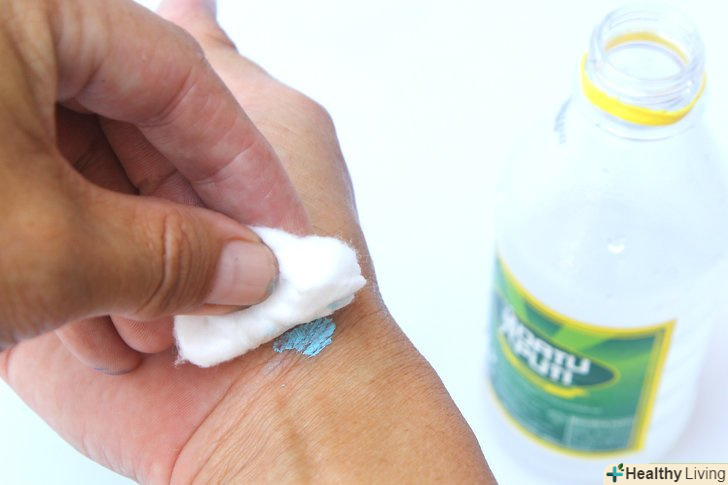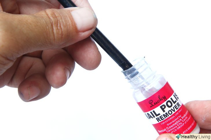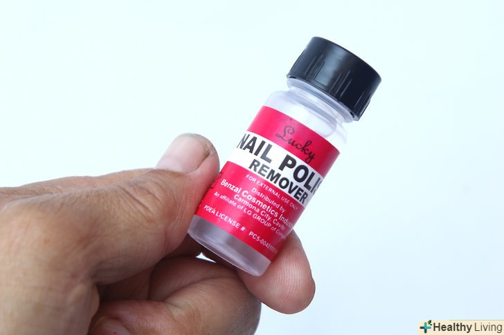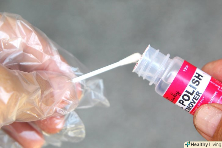 Візьміть трохи рідини для зняття лаку. можна також використовувати ацетон. Хоча ацетон жорсткіше і більш схильний викликати сухість шкіри, він швидше діє.