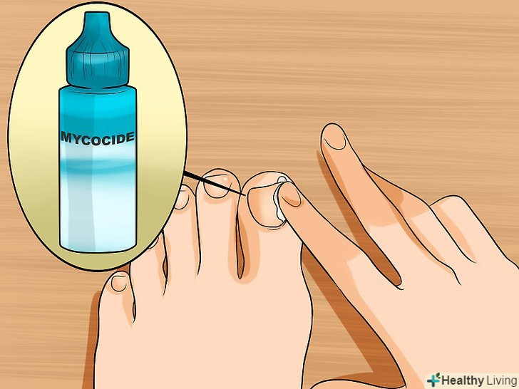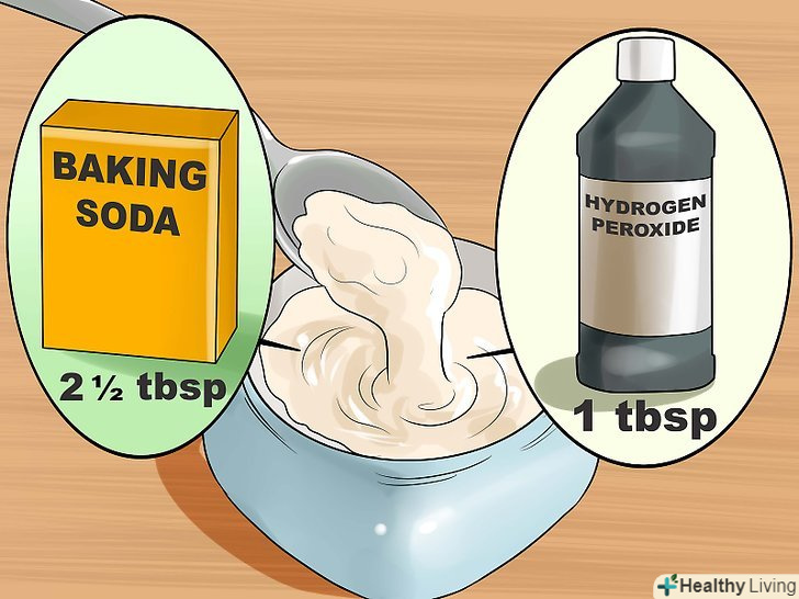 Зробіть протигрибковий засіб в домашніх умовах. насипте 2 ½ столові ложки харчової соди в невелику миску і додайте до неї 1 столову ложку перекису водню. Ретельно переміщайте отриману суміш, а потім занурте в неї ватний диск. Нанесіть на нігті пальців ніг. Залиште засіб на 5 хвилин, а потім промийте нігті водою. Повторюйте процедуру щодня.- Ви також можете використовувати питну соду або перекис водню окремо, якщо у вас в наявності є тільки один компонент. Змішайте його в мисці з теплою водою і нанесіть на ніготь. [5]