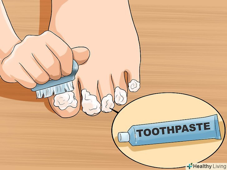 Спробуйте відбілюючу зубну пасту. швидко позбутися від плям на нігтях, наприклад від червоного лаку, вам допоможе нанесена на їх поверхню за допомогою пензлика зубна паста. Цей спосіб не буде ефективний у випадку з наявністю жовтих плям.