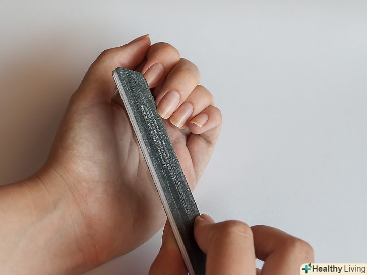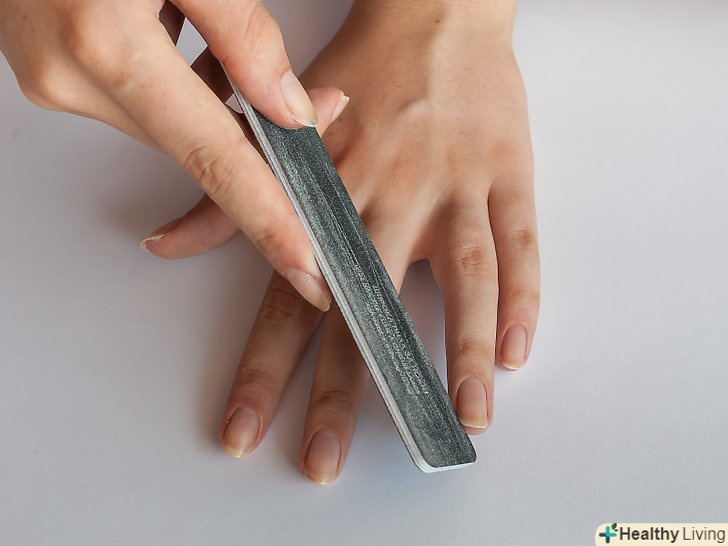 Щоб надати нігтям квадратну форму, випрямити край нігтя і злегка закруглити кути. # щоб надати нігтя округлу форму, сильно округлите кути за допомогою пилочки. Всі нігті повинні бути однакової форми.