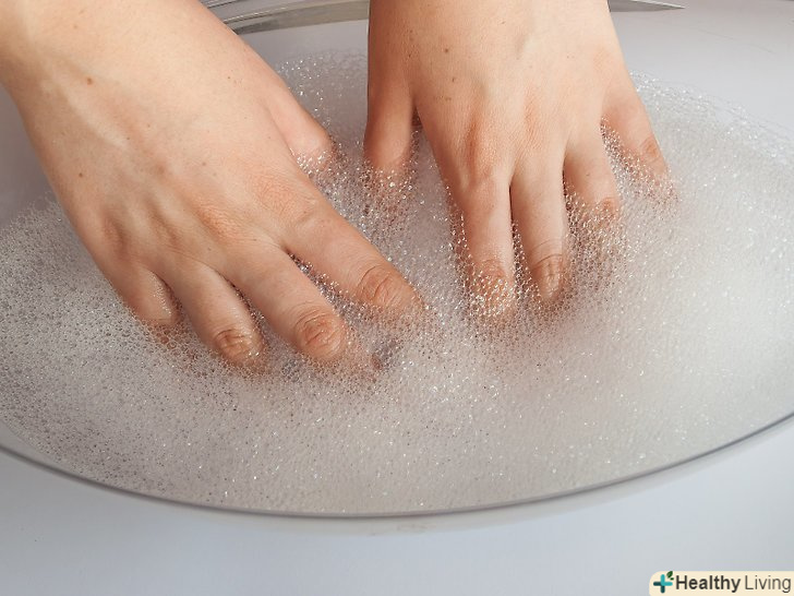 Заповніть миску теплою мильною водою і покладіть пальці в неї на 5 хвилин.
