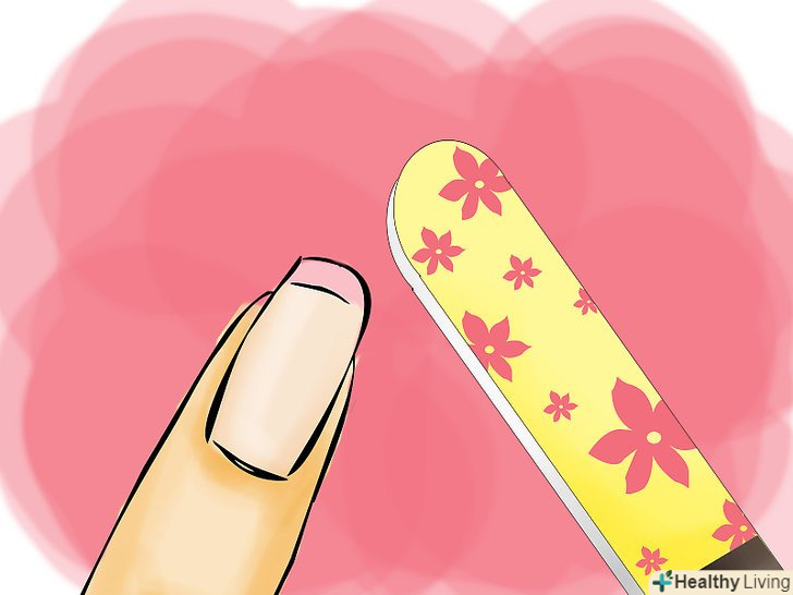 Підпиляєте нігті даної особи. підпиляєте нігті, як того хотів би ваш друг. Округлі? Квадратні? Щось між ними? Переконайтеся, що вони також однакові по довжині. Запитайте свого друга, що йому подобається, і відштовхуйтеся від цього.- Обов'язково пиляйте в одному напрямку, щоб зберегти нігті настільки міцними, наскільки це можливо. [3] Не поспішайте; будете занадто поспішати, і ви, в кінцевому підсумку, отримаєте ніготь коротше, ніж припускали; і тоді вам потрібно буде вкорочувати всі інші нігті.