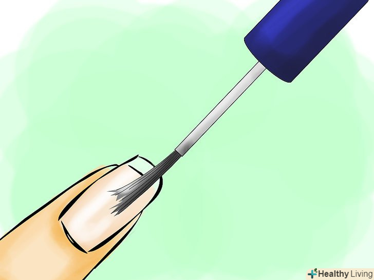 Нанесіть верхній шар. для закріплення кольору і запобігання відколів, нанесіть верхнє покриття. Це також зробить нігті дуже блискучими і привабливими. Однак нехай цей шар буде тонким; товстий шар, хоча і блискучий, може не зробити нігті візуально краще.- Ваша подруга повинна буде повторно наносити верхнє покриття кожен день або близько того, якщо хоче, щоб колір довше зберігся.