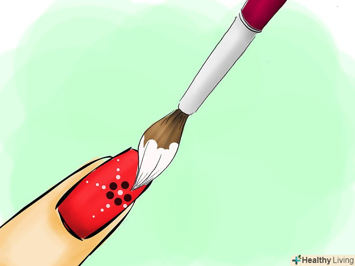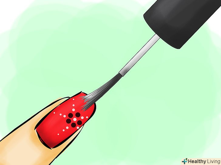 - Після того як ви намалювали нігті на одній руці, приступайте до іншої. Після того як ви зробили обидві руки, почекайте 2 хвилини, потім знову покривайте їх лаком. Зачекайте ще дві хвилини перед нанесенням прозорого покриття.