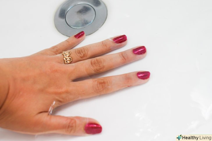 - Замочіть нігті. на короткий час замочіть руки у воді або оцтовому розчині, щоб пом'якшити нігті, одночасно підсушуючи їх, тим самим полегшуючи процес зчеплення лаку з поверхнею нігтя.