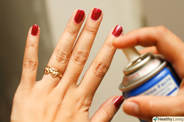 - Висушіть нігті швидше. якщо ви хочете, щоб лак висох швидше, можете прискорити процес, занурюючи нігті в крижану воду або обробивши нігті кулінарним спреєм.