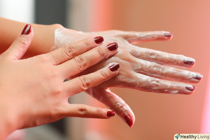 Нанесіть крем для рук перед тим, як зняти старий лак. [1] якщо шкіра бліда, від темного лаку можуть залишитися плями. Якщо ви нанесете крем на руки, особливо в областях навколо кожного нігтя, то це допоможе звести цей ризик до мінімуму.- Рекомендується використовувати густий крем для рук, так як в ньому міститься більше масел і зволожуючих компонентів. Ці масла не дозволять свіжому лаку забруднити шкіру.