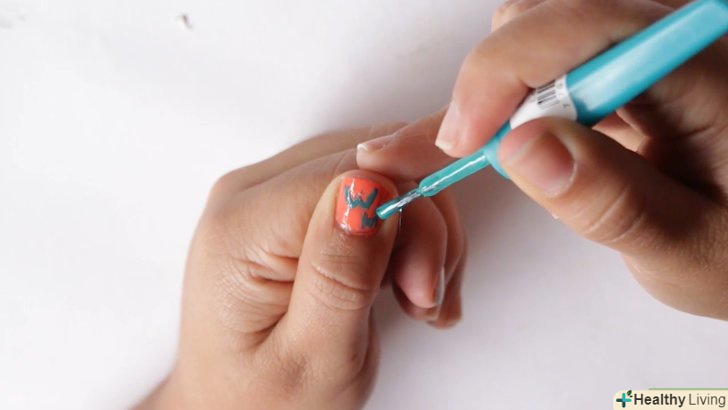 Створіть будь-який дизайн за вашим бажанням. як тільки основний колір нанесений і висох, ви можете нанести будь-які елементи дизайну або малюнки за допомогою інших лаків.- Кілька ідей ви можете знайти в розділі цієї Статті "ідеї для манікюру".