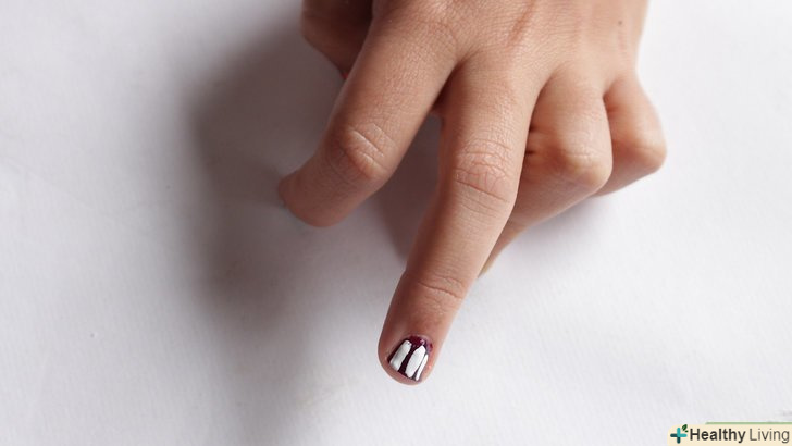 - Нанесіть кілька тонких шарів лаку. замість того, щоб наносити один товстий шар лаку, нанесіть два або більше тонких шару на кожен ніготь для більш гладкого, рівного покриття. Зачекайте, поки нігті висохнути перед тим, як наносити наступний шар.
