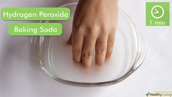 Відбіліть нігті після використання темного лаку. темні лаки для нігтів можуть забруднювати нігті під ними, пробиваючись через новий лак, який ви хочете нанести. Ви можете відбілити нігті за допомогою суміші гарячої води, перекису водню і харчової соди.- Змішайте 1 ст.л. (15 мл) перекису водню з 2 ст. л. (30 мл) харчової соди в ємності з 250 мл теплої або гарячої води. Замочіть нігті з плямами в цьому розчині на хвилину.