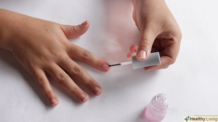 Спочатку нафарбуйте нігті на провідній руці. Якщо ви фарбуєте нігті собі, спочатку нафарбуйте провідну руку, до того, як нанесете лак на неведущую руку. Вам буде легше керувати вашою провідною рукою з лаком, ніж неведущей рукою з нафарбованими нігтями.- Нанесіть базове покриття. базове покриття може захистити ніготь, зробити манікюр більш гладким і продовжити термін носіння лаку.