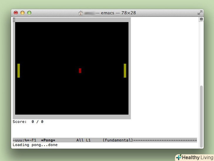 Введіть "Pong".відкриється вікно з двома бітами (ракетками) і рухається червоною кулею (м'ячем) між ними.