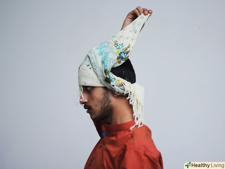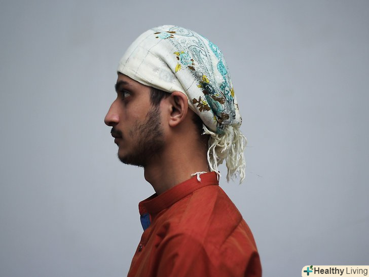 - Зав'яжіть вузол на бандані зверху так, щоб вона покрила вашу голову і волосся, або зав'яжіть знизу під Вашими волоссям, якщо ви прагнете до такого вигляду і у вас довге волосся.