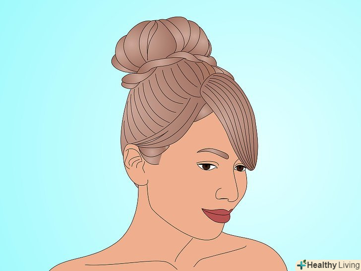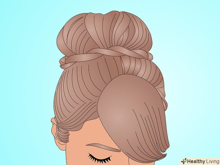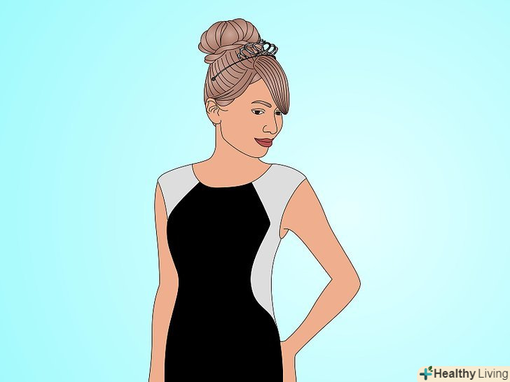 Спробуйте зробити високу зачіску для класичного образу і максимальної опори. можна зробити високий і тугий пучок, як у балерини, або нещільний/недбалий пучок. Навіть можна спробувати зробити хвостик або заплести косу.- Додайте хвостику обсягу, злегка начесав волосся у верхівки і надавши їм форму кульки.