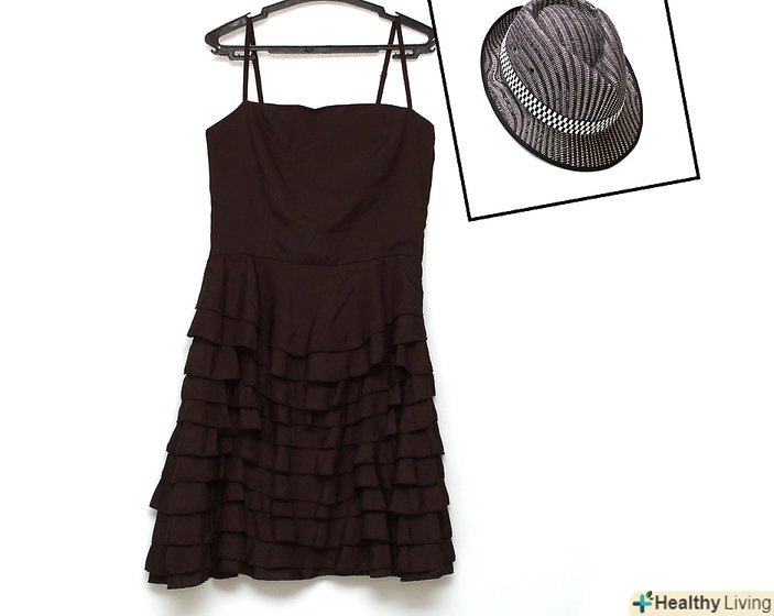 - Надайте вашому образу старовинні елементи. Виберіть сукню з підлогами в стилі 1920 - х років і поєднуйте з туфлями на підборах, які відповідають кольору вашого сукні. Додайте німого натурального або штучного перлів або круглі бісерні прикраси, щоб доповнити аксесуарами. Завершіть образ саржевою капелюхом, яка поєднується з кольором вашого сукні. Зверніть увагу на фетрову капелюх з великим дорогоцінним каменем або квіткою збоку.