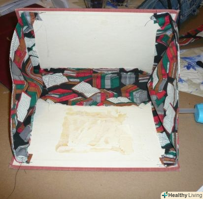 Приклейте покриті тканиною прямокутники до внутрішніх сторін кожної частини обкладинки книги, закриваючи всі необроблені краї.