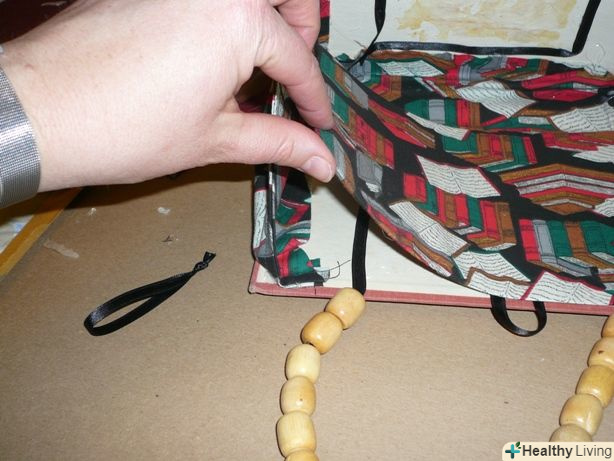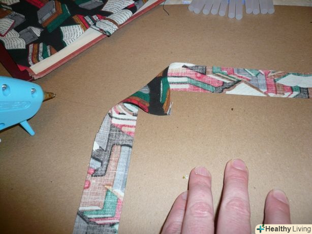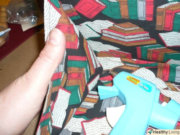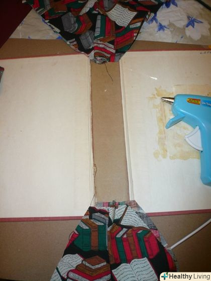 Оберніть вузькі краї тканини навколо вузьких кінців палітурки. Приклейте їх.
