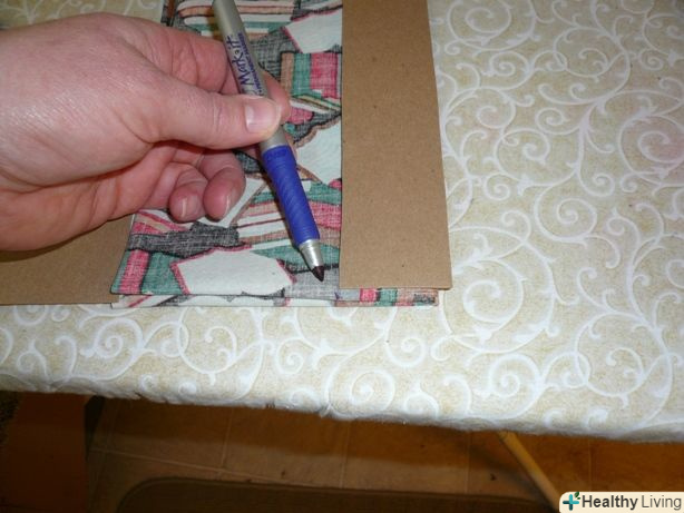 Виріжте шматок пресованого картону трохи менше, ніж розмір палітурки. він буде підтримувати і зміцнювати дно вашої нової сумочки.