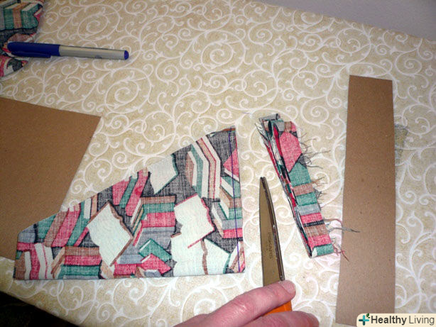 Використовуйте картонні прямокутники в якості викрійки, щоб вирізати тканину. покладіть картон на тканину і виріжте тканину навколо нього, залишаючи зазор близько 2,5 см з кожного боку.