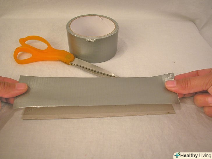 Відріжте клейку стрічку такого розміру, щоб вона відповідала довжині і ширині смужки з картону. Наклейте стрічку на одну зі сторін картону. Процес цей нелегкий-наберіться терпіння, не поспішайте і робіть все дуже акуратно. Не варто переживати, якщо помітите будь-які вади — браслет не повинен бути ідеальним.