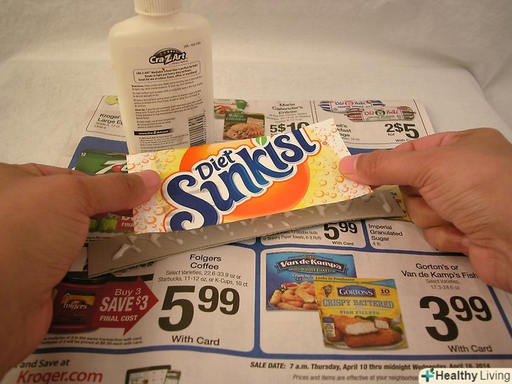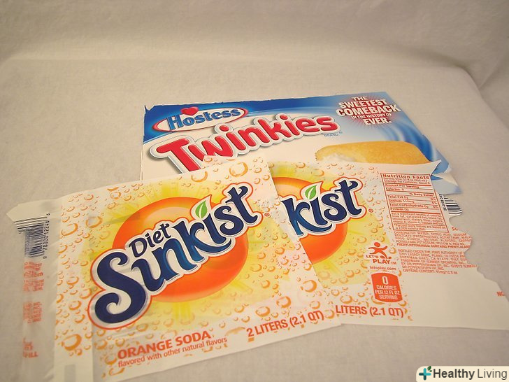 Візьміть яскраві етикетки з банки, пляшки або іншої ємності.