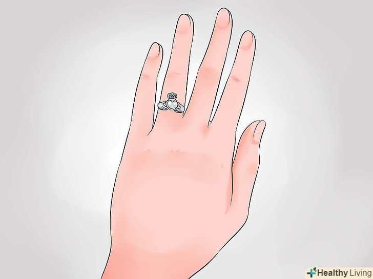 Носіть кільце серцем назовні, щоб показати, що ви не заміжня. серце повинно вказувати в бік пальців, а не на центр вашої руки, і корона повинна вказувати всередину. Так ви всім показуєте, що ви шукайте свою любов, а ваше серце ніким не зайнято.
