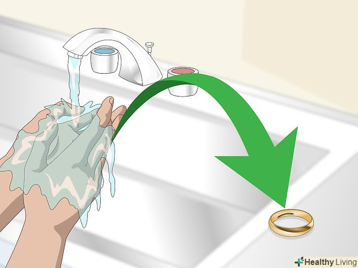 Знімайте прикраси, перш ніж намочити руки. не плавайте, не мийте руки і не приймайте душ з кільцями на пальцях. Вода прискорює процес окислення, через що кільця стають зеленими, а солона вода взагалі може роз'їсти прикраси. [3]