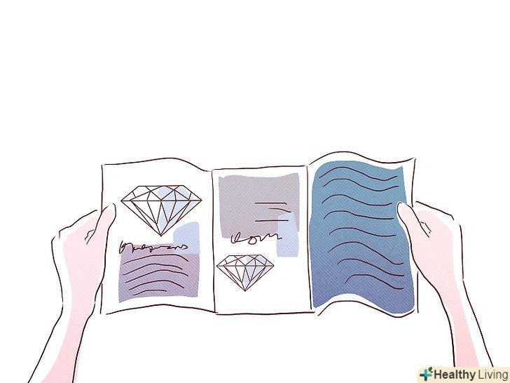 Проведіть своє дослідження. самостійно ознайомтеся з інформацією про ціни і якість діамантів, щоб вас не обдурили.- Пройдіться по магазинах. відвідайте кілька ювелірних магазинів для більш широкого вибору.