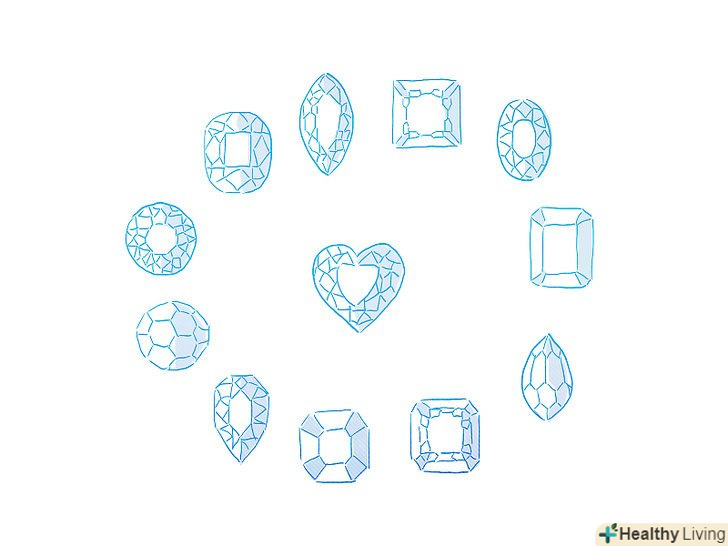 Виберіть правильну форму. огранювання має відношення до якості і рівня блиску, а форма є одним з аспектів огранювання. Перегляньте всі можливі форми, доступні на ринку, і виберіть найбільш вподобану вам.- Якщо ви купуєте камінь іншій людині, поцікавтеся його думкою, перш ніж зробите вибір.