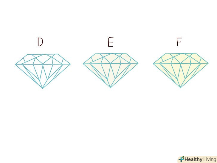 - Подивіться камені класу Е (білий лід) або F (прекрасний білий), якщо ви не можете собі дозволити діамант класу D, але хочете камінь, який Безбарвний для будь-якого ока.