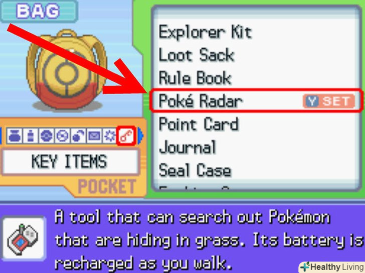 Використовуйте Poke Radar.відмінний спосіб подорожі через область tall grass, за допомогою якого ви зможете виявити зачаїлися там покемонів. Poke Radar допоможе вашим покемонам в битвах, а також збільшить ваші шанси знайти вірус Pokerus, завдяки якому ваші покемони стануть сильнішими.