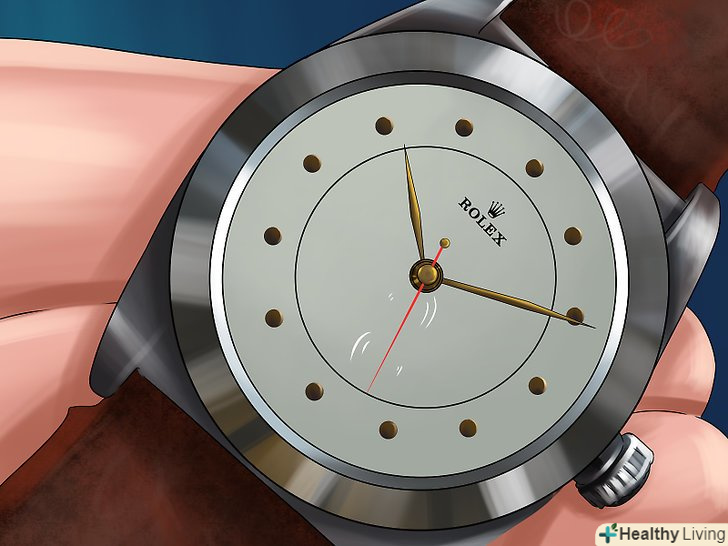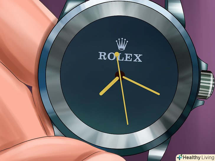 Прислухайтеся до цокання. секундні стрілки звичайного годинника пересуваються ривками і якщо добре прислухатися, можна почути тихе цокання. Однак секундна стрілка Rolex (і багатьох інших годин дорогих марок) переміщається дуже плавно, і ви не почуєте цокання секундної стрілки. Якщо на Rolex чутно цокання - це підробка.
