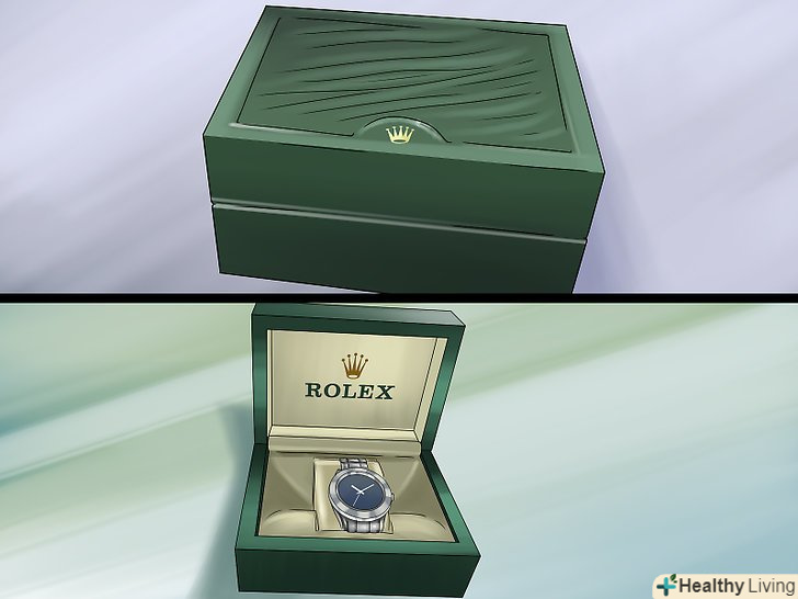 Уникайте неякісної упаковки. все, що пов'язано з Rolex, має бути бездоганним і елегантним. Це стосується також і упаковки. Справжній годинник Rolex упаковані в якісні коробки, в яких є кріплення для годинника, а також невелика ганчірочка для чищення годин. На кожному елементі упаковки повинен бути логотип і назва Rolex. До годинника додається гарантійний талон і інструкція. [11] якщо у ваших годинників немає чого-небудь з перерахованого, вони підроблені.- Не варто купувати годинник у вуличних продавців, у них не буває оригінальної упаковки і немає ніякої гарантії.