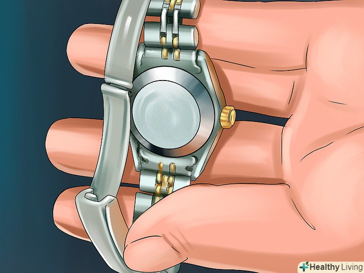 Серійний номер. деякі підробки дуже високої якості, і їх важко відрізнити від справжніх. Щоб визначити справжність годинника, вам доведеться вивчити найдрібніші деталі, що є дуже складною роботою. Для початку знайдіть серійний номер годинника. Для цього треба буде зняти ремінець. Треба тонким предметом підчепити і вивести в сторону штифт. Якщо вам складно це зробити, можна довірити цю справу професіоналам. Серійний номер розташовується між "лапками" під числом 6 на циферблаті.- Серійний номер повинен бути написаний чітко, без будь-яких нерівностей. Деякі виробники підробок для цього використовують кислоту, тому якщо подивитися на номер підробки під збільшувальним склом серійний номер буде нечітким. [6]